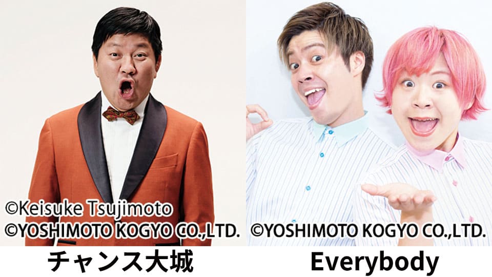 優勝経験のあるチャンス大城、クリティカルヒットネタで笑いを呼ぶ「Everybody」の2組が登場!■時間 12:20~