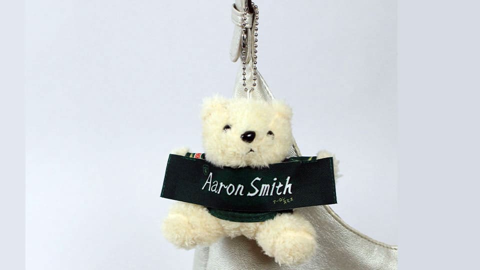 ジャージを着た手のひらサイズの可愛いベアキーホルダーが