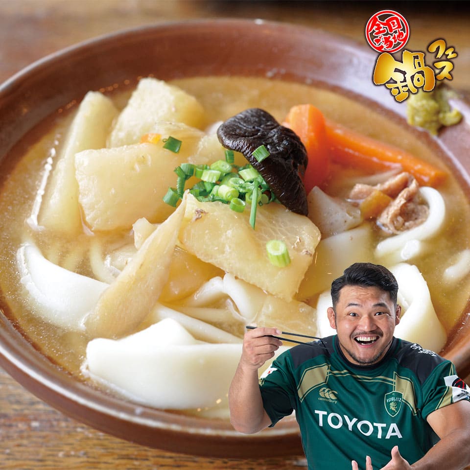 選手の出身地にちなんだ、全国の選りすぐりのご当地鍋を用意。郷土の味を召し上がれ!