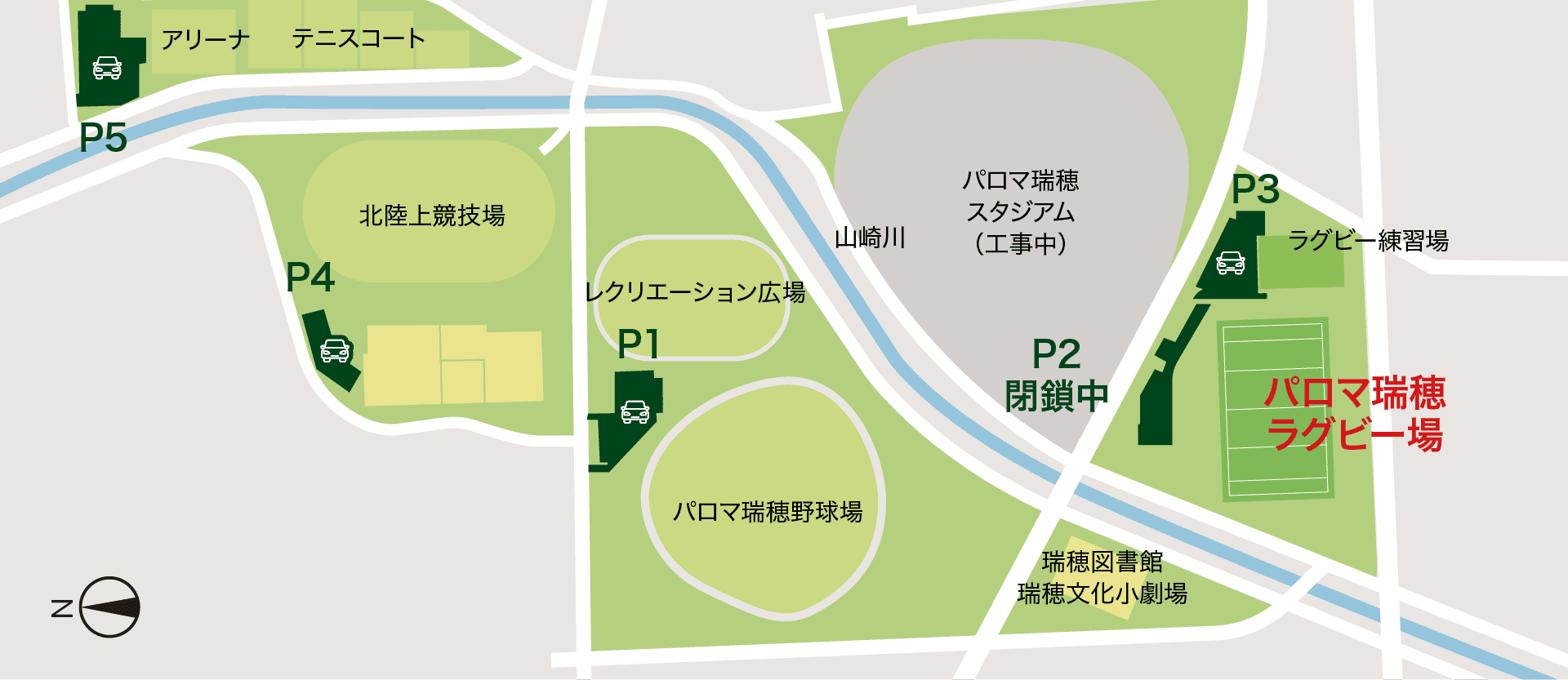 パロマ瑞穂スポーツパークは現在、大規模改修による駐車場の駐車制限があります。