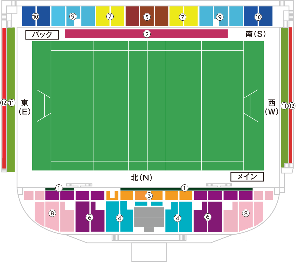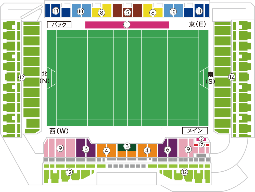 | ⑭メイン・バック4階席 | 2,400 | 1,200 | |
