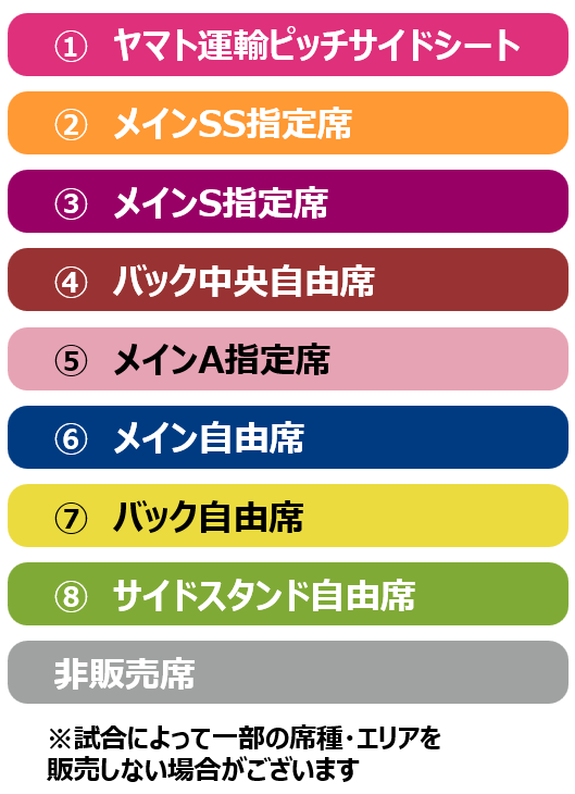 | ⑧メインS指定席 | 5,000 | 2,500 | |